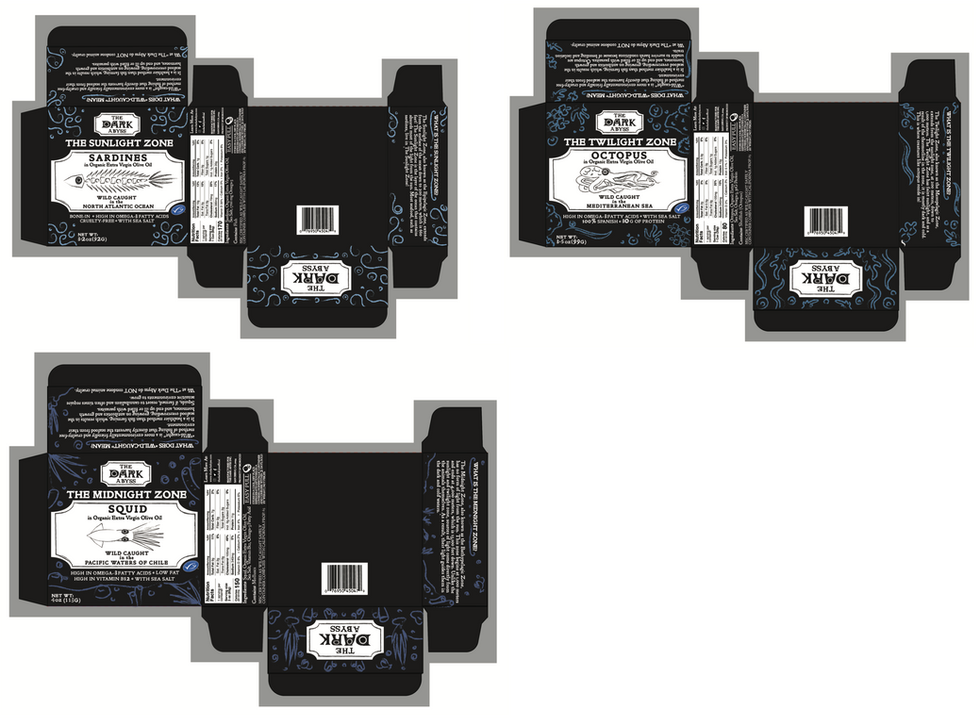 For this project, I was to design a brand of canned seafood for a DINKS demographic, double income no kids. The thing to consider for this project too, was to be as ethical as possible and involve the issues of fish farming and how that influences canned food. For my project, I decided to do a packaging based off more punk ideology, since for one, punk is non conformist and left leaning, which in a package, that would stand out. I also wanted to make it educational, hence, each box has illustrations based off the environment the seafood is from, explaining what each water zone is and explaining what it means to be "wild-caught".